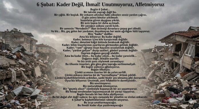Ve biz… Biz, geç gelen her yardımın, duyulmayan her sesin ağırlığını hâlâ taşıyoruz.